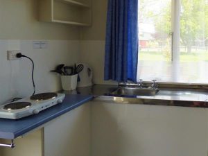 These cabins have one room which makes up the sleeping area, kitchenette and living area. Maximum occupancy is four to five guests per unit. There is a double bed and single bunk beds. Some units have a single bunk bed above a double bed, which allows for maximum occupancy of 5 guests. Bed linen is provided for all booked guests.